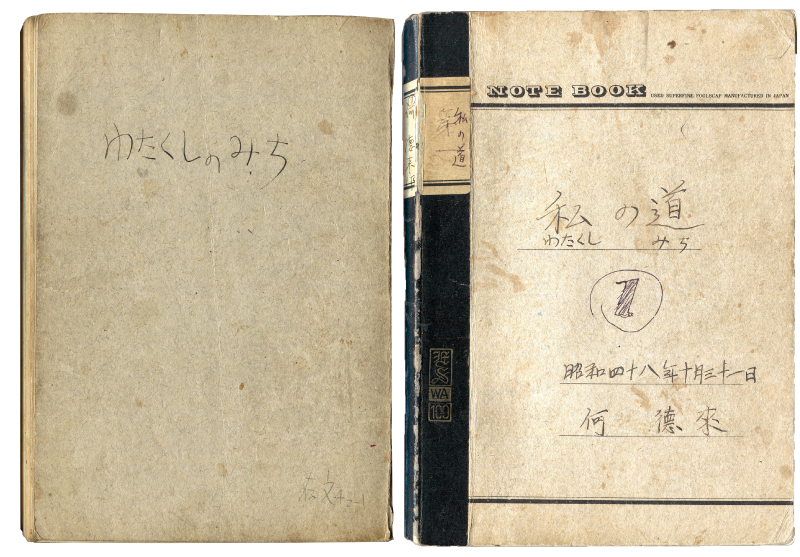 《吾之道1》筆記本,封面註記「昭和四十八年十月三十一日」,這是秀子夫人過世之後,畫家為平復心情重拾短歌創作的手稿。本館於2023年舉辦研究型展覽「吾之道:何德來回顧展」時,整理了這本手稿。首頁那闕短歌,作於1973年3月20日,距秀子去世僅兩個月,何德來慨嘆癌症治療無效,徒增痛苦。